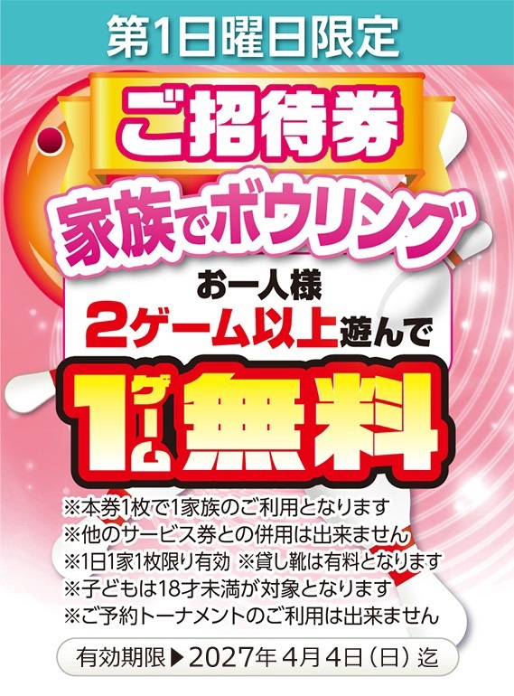 ※ お一人様2ゲーム以上遊んで1ゲーム無料になります。